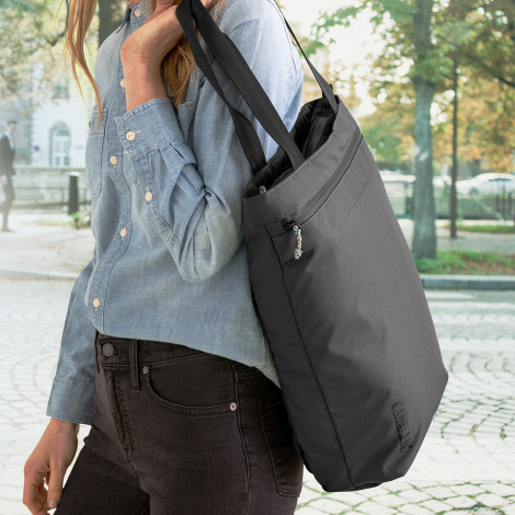 The superb CamelBak Pivot Tote Backpack has both woven carry handles and adjustable woven shoulder straps to provide the ultimate flexibility for commuting and urban exploring. It is manufactured from 70 percent recycled material, and 25 single-use plastic bottles are repurposed to make each backpack. Pivot has a generous 20L main compartment with a zippered closure and a padded laptop sleeve that will comfortably hold a 38cm laptop. It also has a zippered internal pocket and a slip pocket which is ideal for storing essential items. Other features include a large zippered pocket on the front, a large slip pocket on the back and a zippered side pocket for storing a water bottle. The CamelBak logo is subtly branded on the front of the bag and it is presented with a cardboard swing tag which includes the Got your Bak lifetime guarantee information.