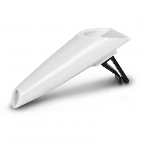 Pen holder which clips securely to car air vents. It has a removable clip which is supplied unassembled.