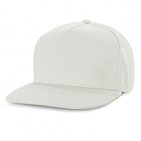 Premium structured five panel cap which is made from cotton twill. It has a flat peak, embroidered eyelets, a sweatband and an adjustable snap back closure that allows one size to fit most people.