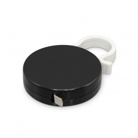 Compact measuring tape with a handy plastic clip. The retractable metal tape measures up to 1m in centimetres and inches.