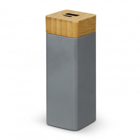 Stylish 5W power bank with natural limestone cement and bamboo casing. The 1200mAh battery can be recharged in four hours from a USB port or mains adaptor. The power bank has a 5V/1A Micro-B input and 5V/1A USB-A output. The power bank is presented in Kraft packaging with Natura branding. A Micro-B USB cable and instructions are included.