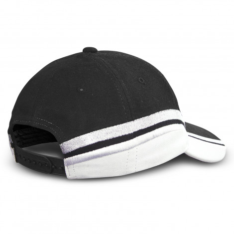 Fully customisable six-panel cap which is made from cotton twill and features an embroidered design that runs from the peak to the back of the cap. The colour of the cap fabric and the embroidery feature can be customised using colours from the standard colour palette. Other features include embroidered eyelets, a pre-curved peak, a sweatband and an adjustable snap closure which allows one size to fit most people. A production lead time of 35 working days applies to this product by air freight and larger orders can be sea freighted on request to reduce the freight cost.