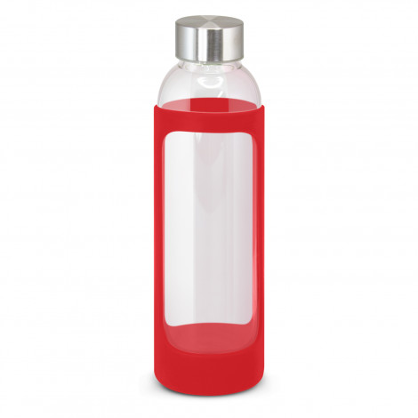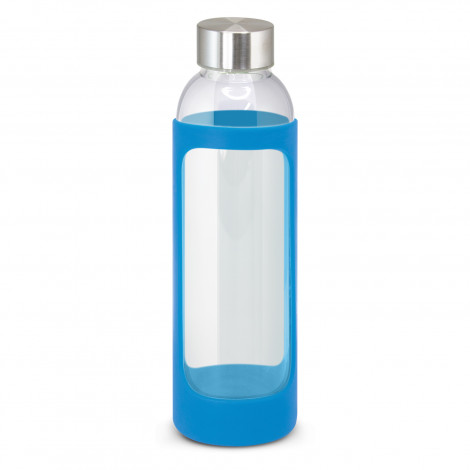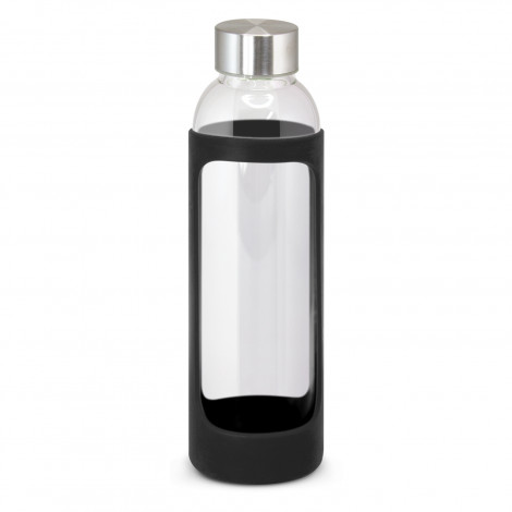 Deluxe 600ml borosilicate glass drink bottle which features a protective soft touch silicone sleeve and a secure screw on stainless steel lid that can be laser engraved with a logo. Borosilicate is a lightweight glass that is exceptionally strong and shatter resistant. Glass is a natural choice for a clean, pure taste and is a safe and reusable plastic alternative. This product is not intended to be used with carbonated or hot liquids and handwashing is recommended.
